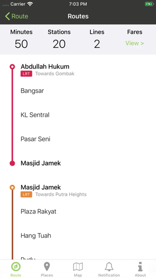 Rapidly lets you view various routes and fares of Kuala Lumpur public transport system, including LRT, MRT, Monorail, KTM, KLIA Transit etc easily.