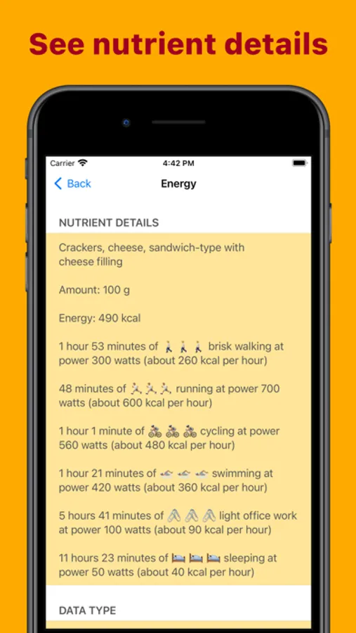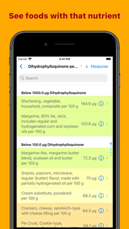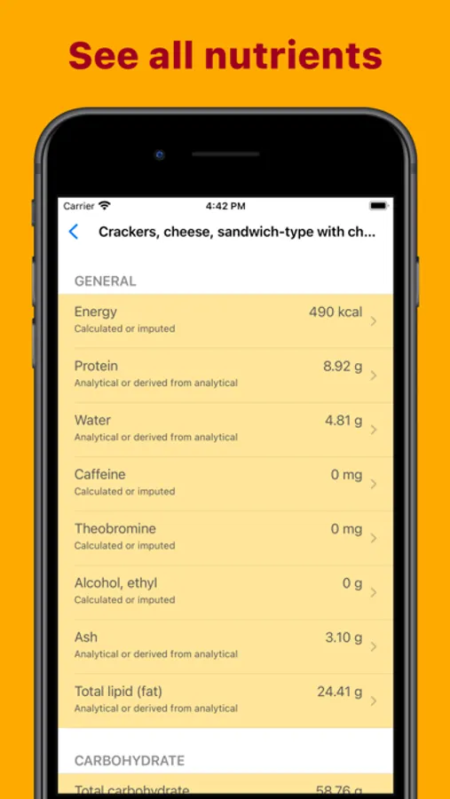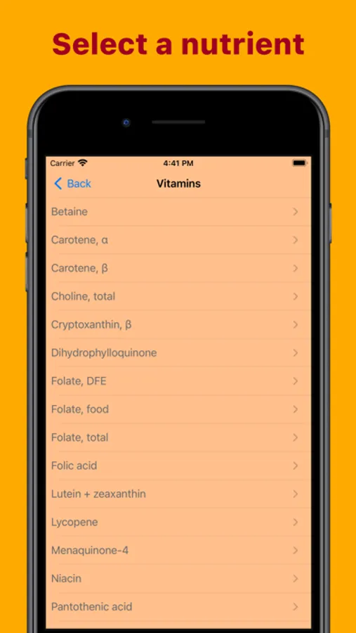 Foodwatts Nutrients gives much more nutritional information. Once you have selected a food, just tap to explore its nutrition in detail.