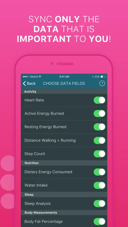 You are free to customize which data to mirror and which to keep private. We currently support 14 different data types: