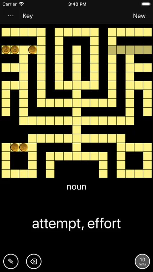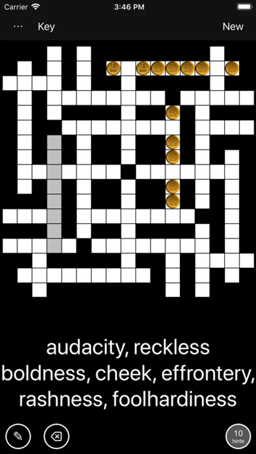 When crossword is completed or perhaps you are just bored with it, tap the 'New' button to make a brand new one.