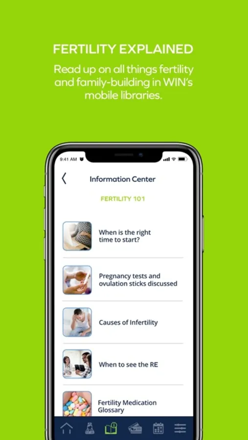 Now with your smartphone, you can access key fertility information, set reminders for important events, track your period and predict your most fertile days, input your personal symptoms and share with a WINFertility network physician or whomever you want, all in one discreet place - any time of the day. Plus, as a bonus for members or employees who have fertility benefits that are managed through WIN, have one-touch access to custom content and 24/7 availability of experienced clinicians.