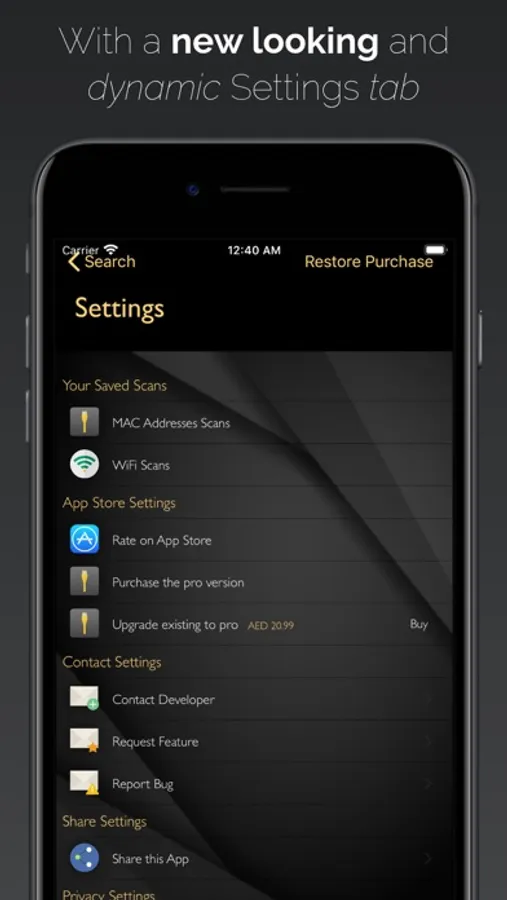 The App gives you the ability to scan connected WiFi or Hotspot network and provide all possible details related to the connected pairs on the same network; starting with the IP address, MAC address, Device name and Company of manufacture.