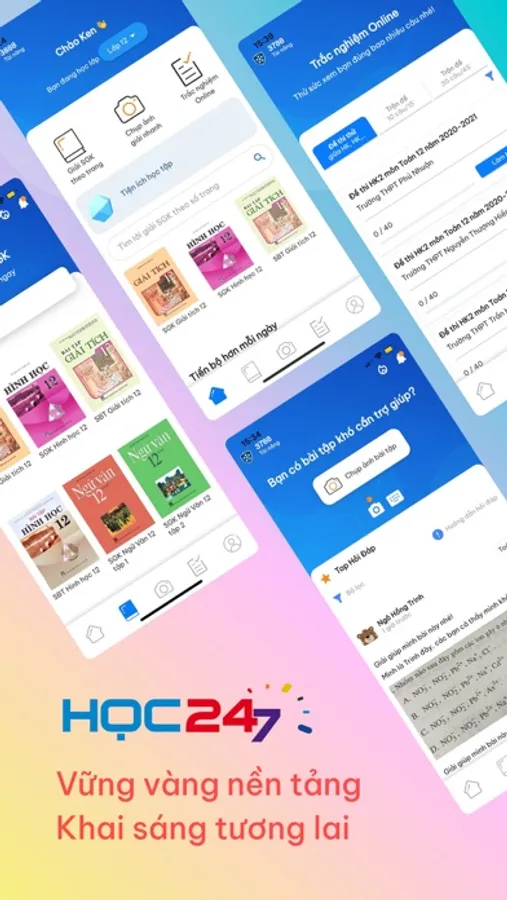 HOC247 là ứng dụng học trực tuyến hàng đầu cho K12 với đầy đủ các chức năng giải SGK sách giáo khoá, SBT sách bài tập, SNC sách nâng cao Online và tải Offline; tìm lời giải qua chụp hình với công nghệ AI nhanh chong trong vòng 2s; kho đề thi trắc nghiệm online theo đề thi giữa HK, thi HK, thi THPT QG và đề trộn trắc nghiệm theo bài học, chủ đề; cung cấp hơn 18 tiện ích học tập cực chất giúp giải mọi bài toán thông dụng cấp phổ thông như đơn vị, hình học, lương giác, giải phương trình, hệ phương trình, từ điển, máy tính… giúp các em học sinh học tốt các môn Toán, Lý, Hóa, Sinh, Ngữ Văn, Tiếng Anh, Sử, Địa, GDCD, Tin Học và Công Nghệ từ lớp 6 đến lớp 12 bám sát chương trình mới của bộ Giáo dục và Đào tạo. Cập nhật đầy đủ các bộ sách mới nhất theo chương trình mới của bộ GD&ĐT như bộ sách cánh diều, bộ sách kết nối tri thức và bộ sách chân trời sáng tạo.