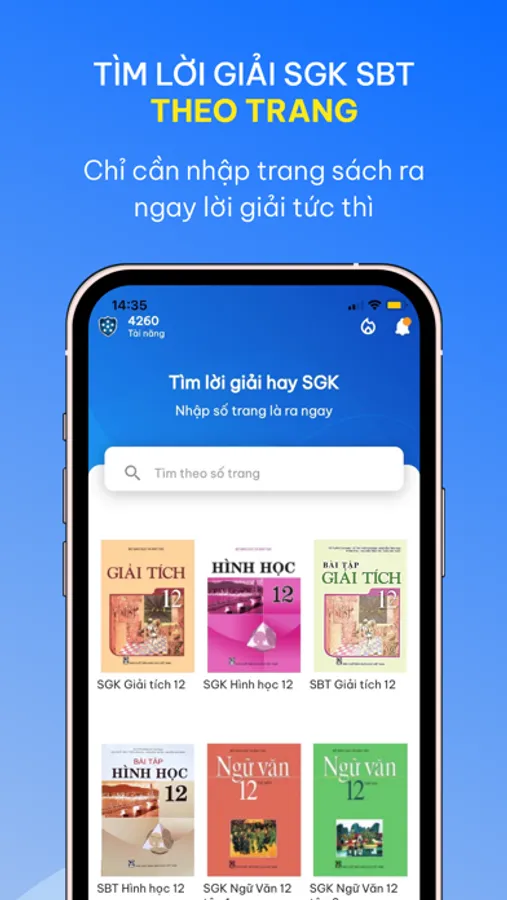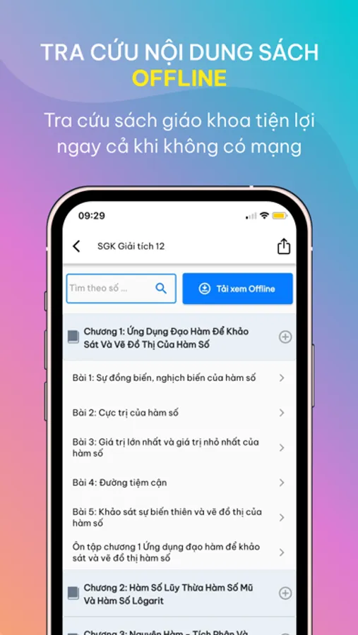 Cho phép tìm kiếm lời giải bài tập, soạn văn, văn mẫu theo chủ đề hay theo trang một cách nhanh chóng tất cả các SGK, SBT của các bộ sách CD, KNTT, CTST chương trình mới và SGK Bộ GD chương trình cũ. Hỗ trợ tính năng tải Offline các SGK SBT tất cả các môn Toán, Ngữ Văn, Tiếng Anh, Vật Lý, Hoá Học, Sinh Học, Lịch Sử, Địa Lý, Công nghệ, GDCD và Tin học từ lớp 6 đến lớp 12 để truy cập bất cứ khi nào mà không cần mạng 3G/4G hay Wifi.