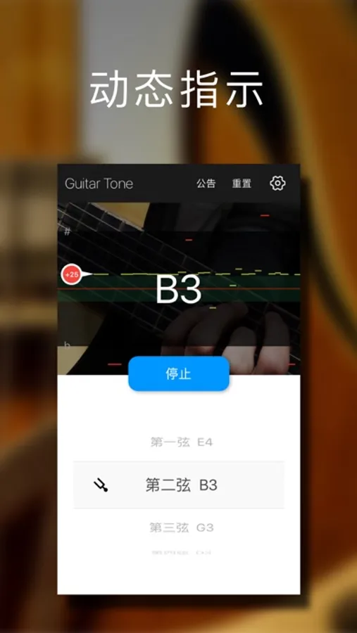 - 动态指示,系统会动态指示当前弦音的位置,是偏高还是偏低。