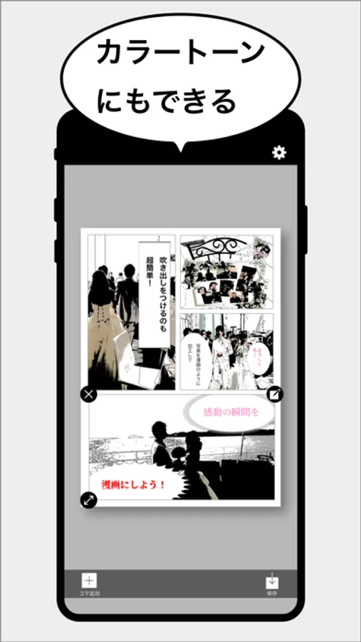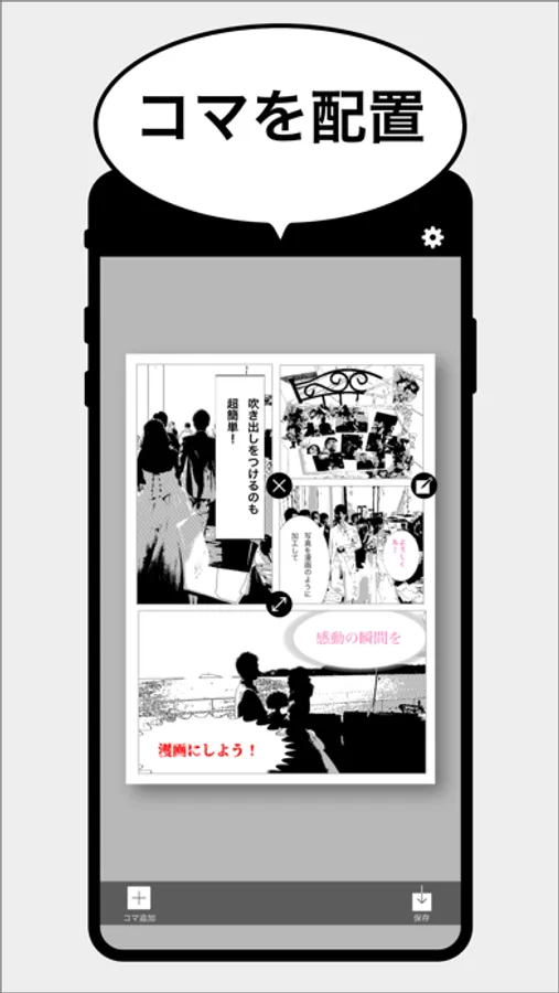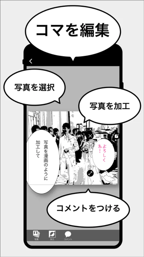 "PhotoManga" not only processes photos, but also allows you to easily "frame placement" and "add balloons"!