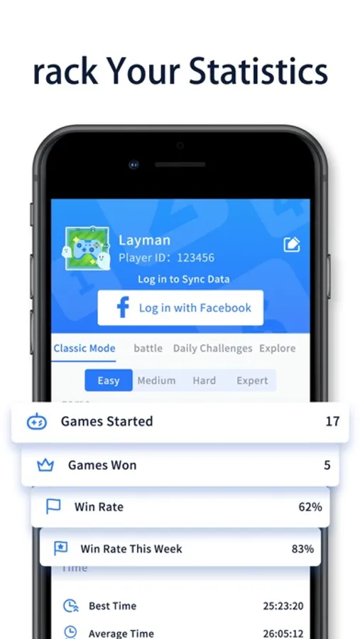 Statistics: Track your progress for each difficulty level of the Sudoku puzzle, analyze your best time and other achievements