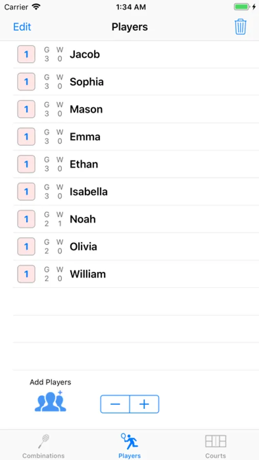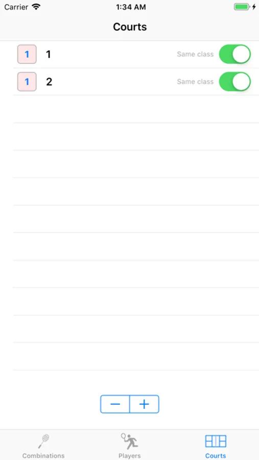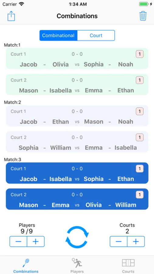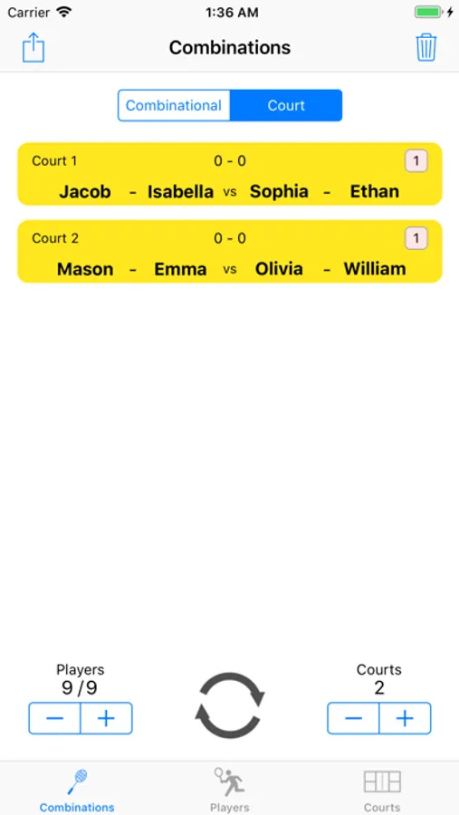 - Can change the number of players and courts after combination creation