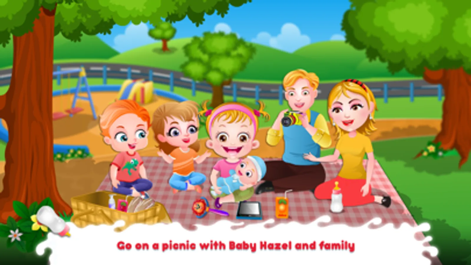 Visit the park with Hazel and family. Enjoy lots of fun-filled activities and help Hazel to introduce her little brother to her friends