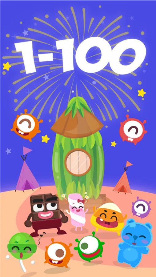 Perfect education game for preschoolers, toddlers and kindergarten kids to learn counting 1 - 100 and practice math 1 + 2 = 3