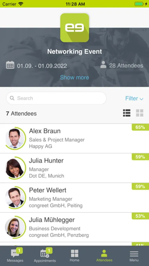 congreet links your event attendees. We developed special matching algorithms, optimizing the process of finding relevant, qualified business contacts.