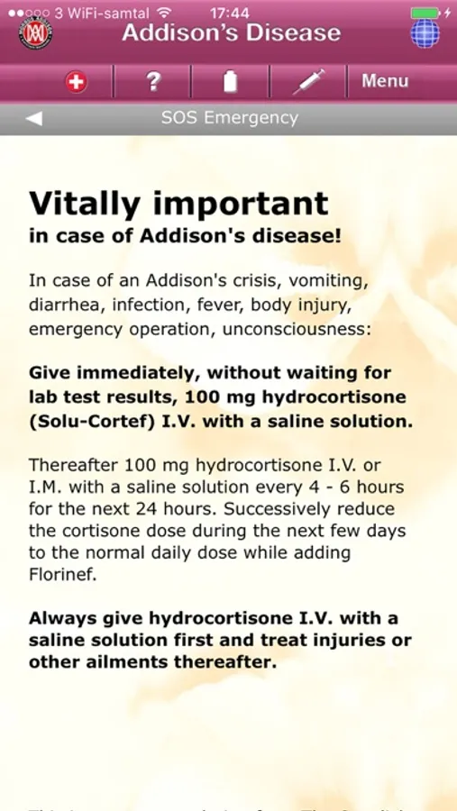 This app contains only recommendations from the Swedish Addison Association - a guide for you who wants more information about Addison's disease.
