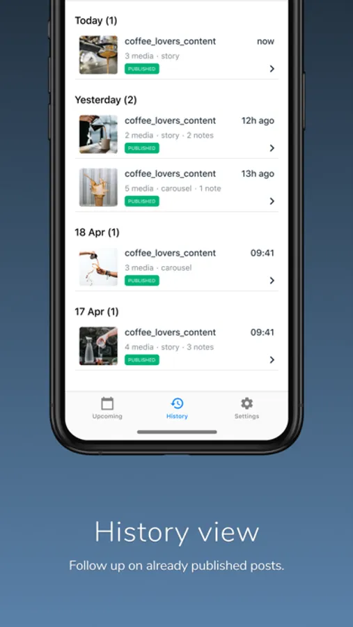The Flowbox app provides support for our clients to publish posts to Instagram on the go.