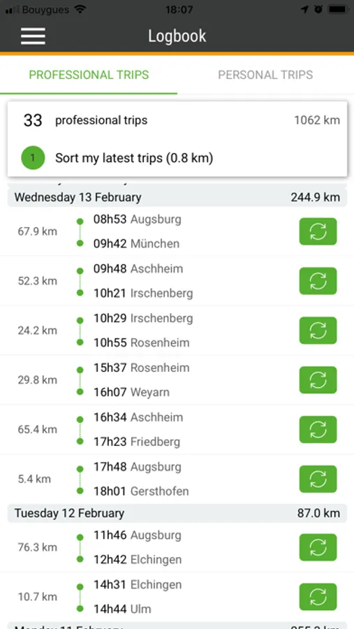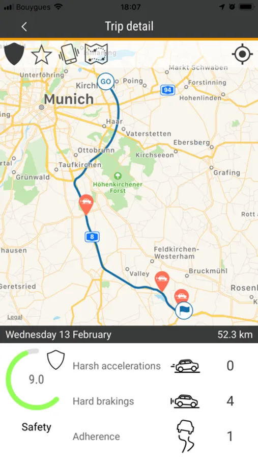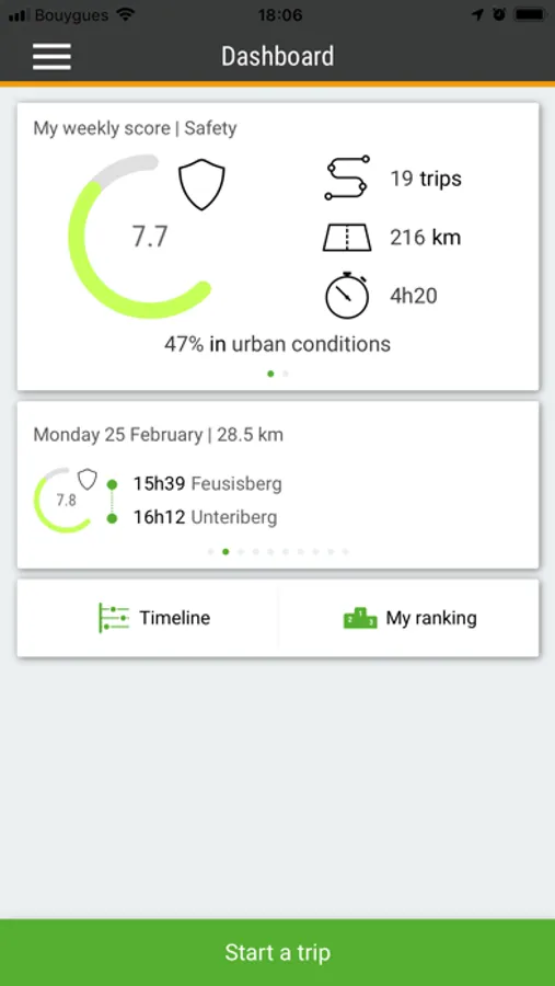 The app runs in the background and automatically detects the beginning and end of a ride. As a result, no manipulation with the smartphone must be made while driving.