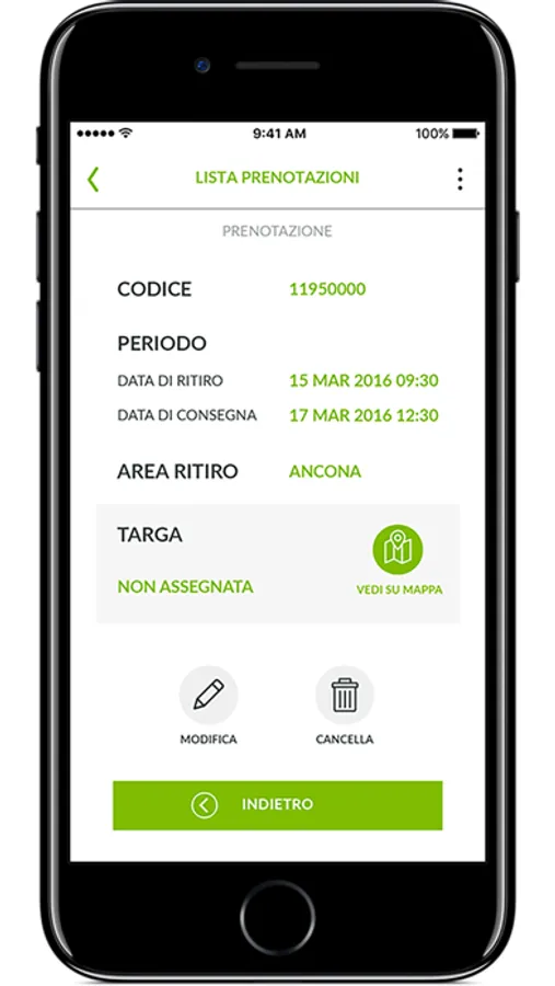 CONFERMA. Un’ora prima dell’avvio del noleggio, ricevi la conferma della prenotazione via sms o e-mail con il numero di targa del veicolo assegnato, il luogo di ritiro e il codice di prenotazione.