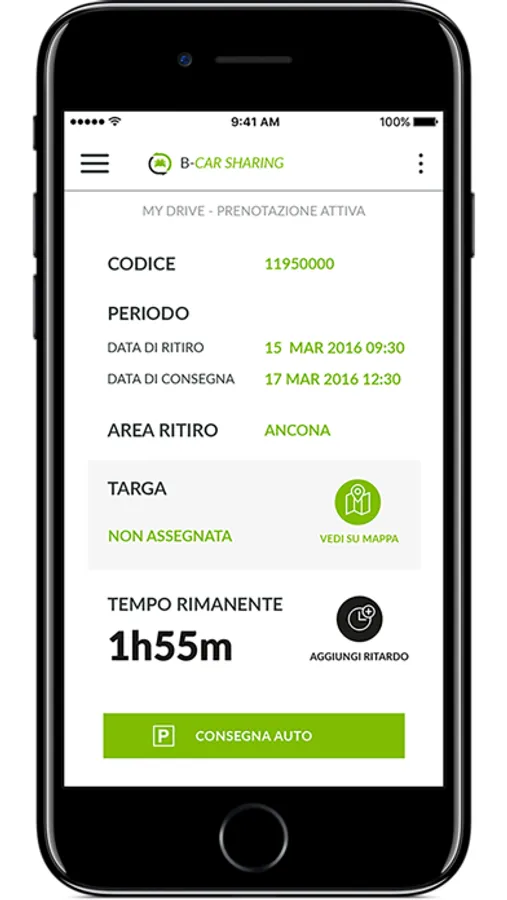 MY DRIVE: vedi tutti i dati della prenotazione attiva e del tempo rimanente di noleggio.