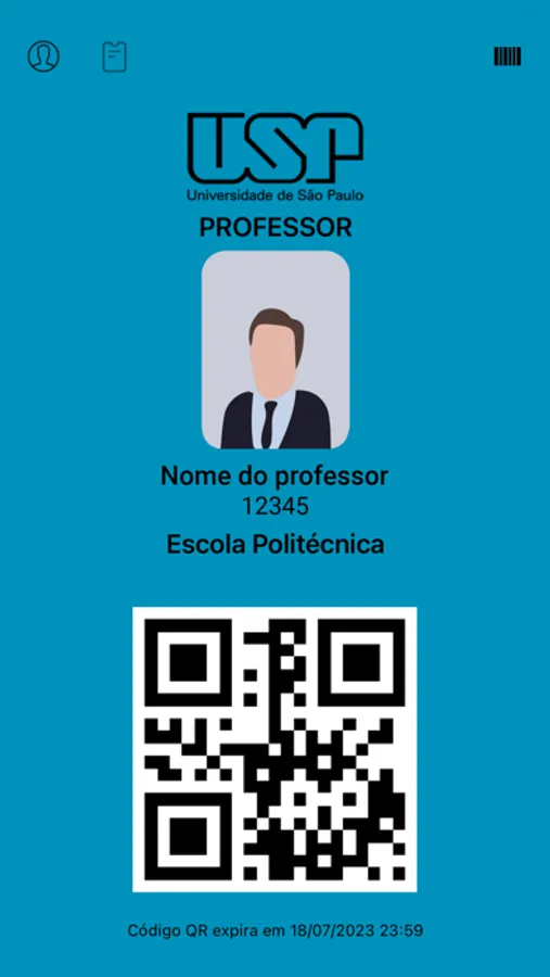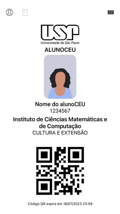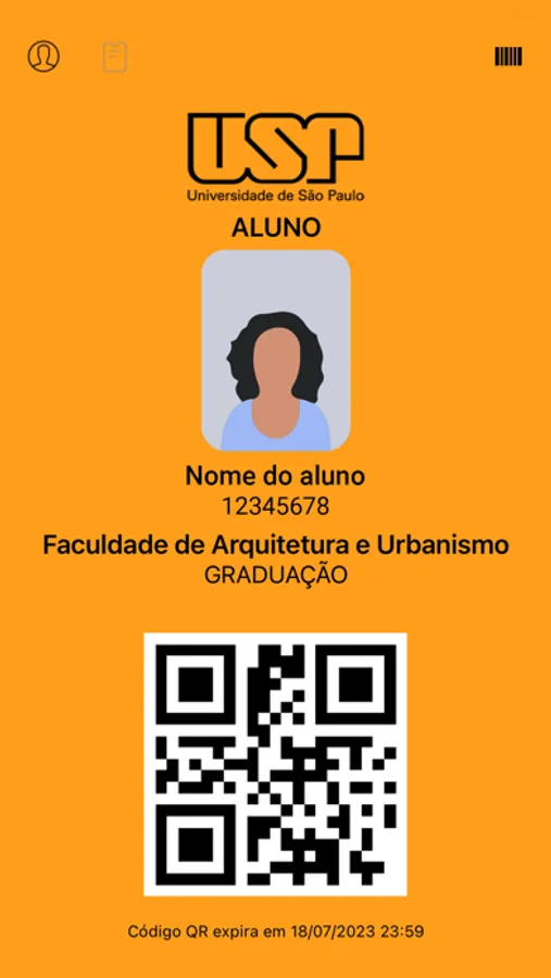 Esta é a carteirinha digital da USP. Ela substitui a carteirinha física, que ainda continua valendo em todas as situações, e pode ser usada como sua identificação na USP. Com ela você terá acesso aos restaurantes, determinadas catracas e bibliotecas. Você pode também gerenciar todas as suas carteirinhas se tiver mais do que uma.