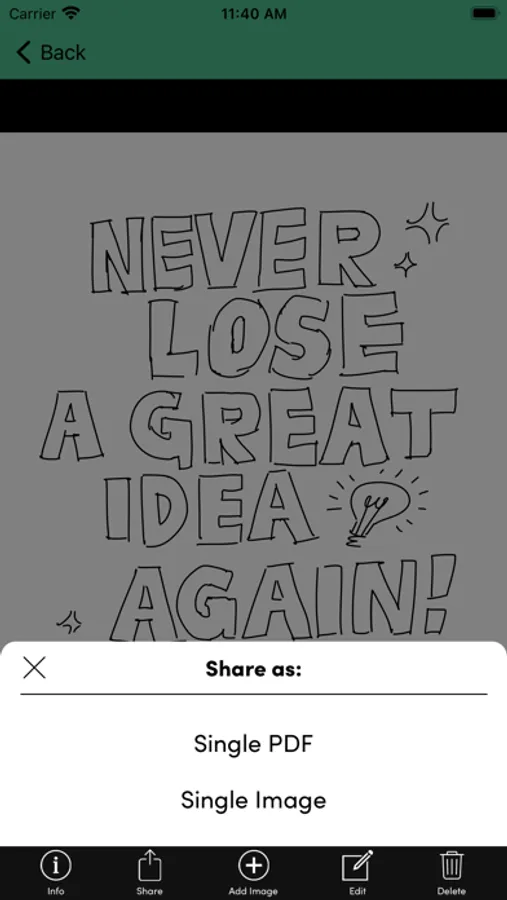 The Blackboard™ app archives work as images or PDFs for easy and fast sharing to e-mail, messages and more.
