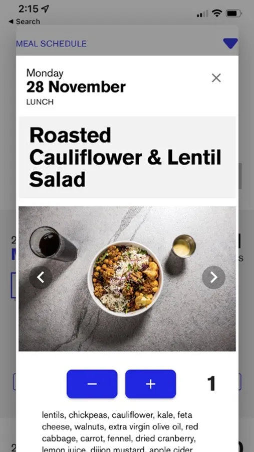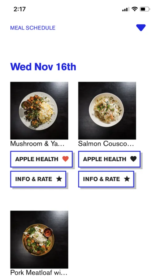 Our app allows you to edit your meal schedule, track your nutrient consumption, see your meal descriptions, and rate your meals.