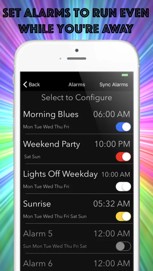 Sync lights to music! Watch the lights change colors along to your favorite songs, whether you're listening to slow country or upbeat hip-hop.