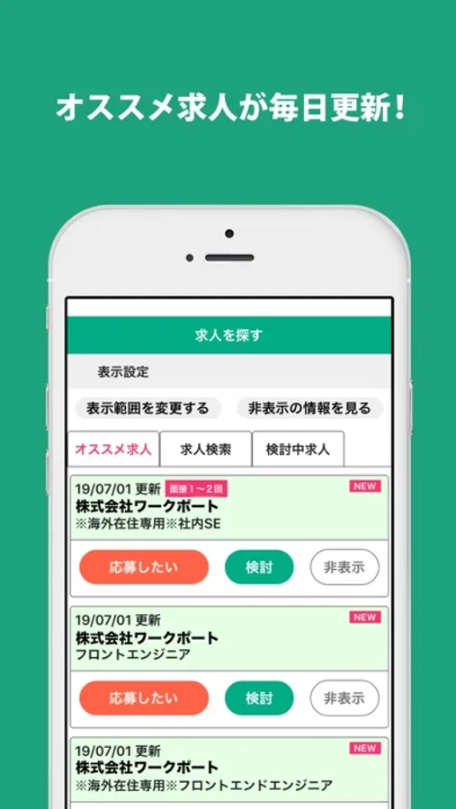 ・オススメの求人情報がリアルタイムで更新され、社名も全て公開されます。