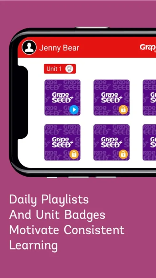 The official study app for the GrapeSEED curriculum is designed to be used only by students enrolled in GrapeSEED classes. This app reinforces key concepts, ensuring proper language exposure, using daily interactive playlists. The additional exposure gained from it leads to earlier fluency and greater proficiency in the English language.