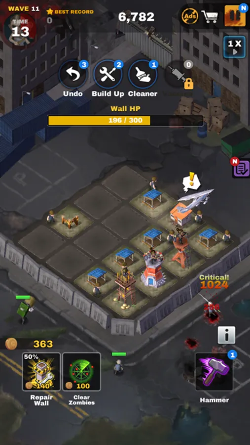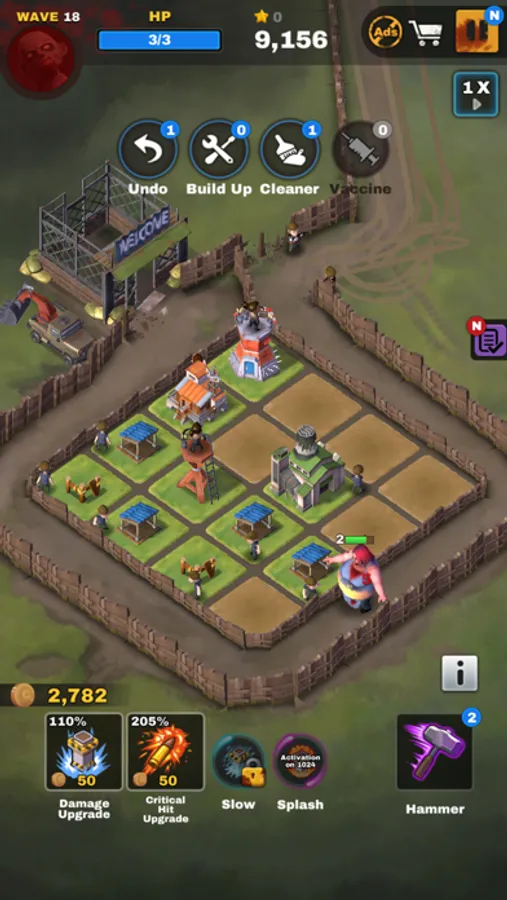 2) Build Higher Towers to defend against Zombie Waves along the fence road.
