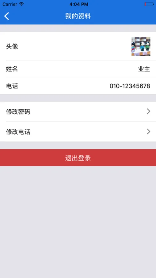 我的资料:用户登录、退出,密码、电话、头像修改