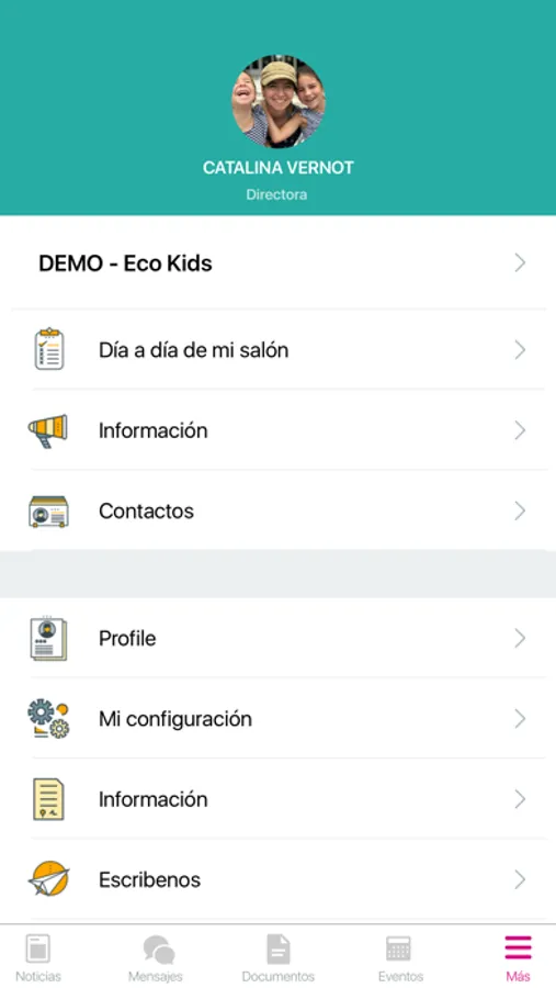 - Enviar mensajes a los profesores del jardín a través del chat especialmente dedicado.