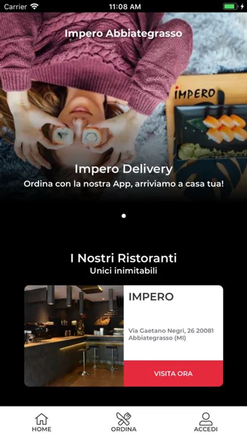 La nostra app gratuita, facilissima da usare, ti permette di ordinare al ristorante Impero più vicino a casa tua.