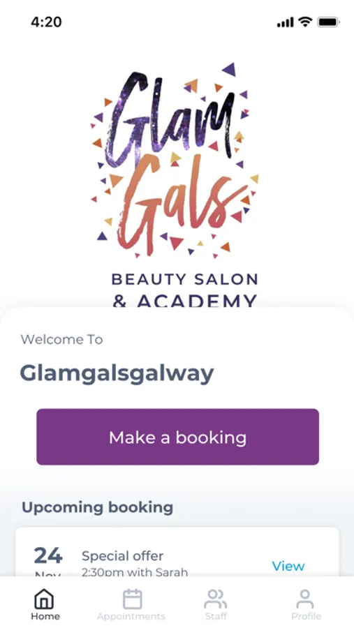 The Glamgalsgalway app makes booking your appointments and managing your loyalty points even easier. You're just a few taps away from feeling good and looking great!