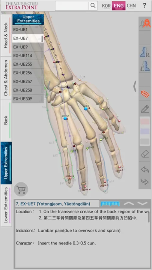 ‘The Acupuncture of Extra Point’ is easy to use because it displays The Extra Acupuncture Point on 3D human body model. As well, the Extra Acupuncture Point and 14 Main Acupuncture Point Meridians are displayed together with the accuracy, so you can easily compare.