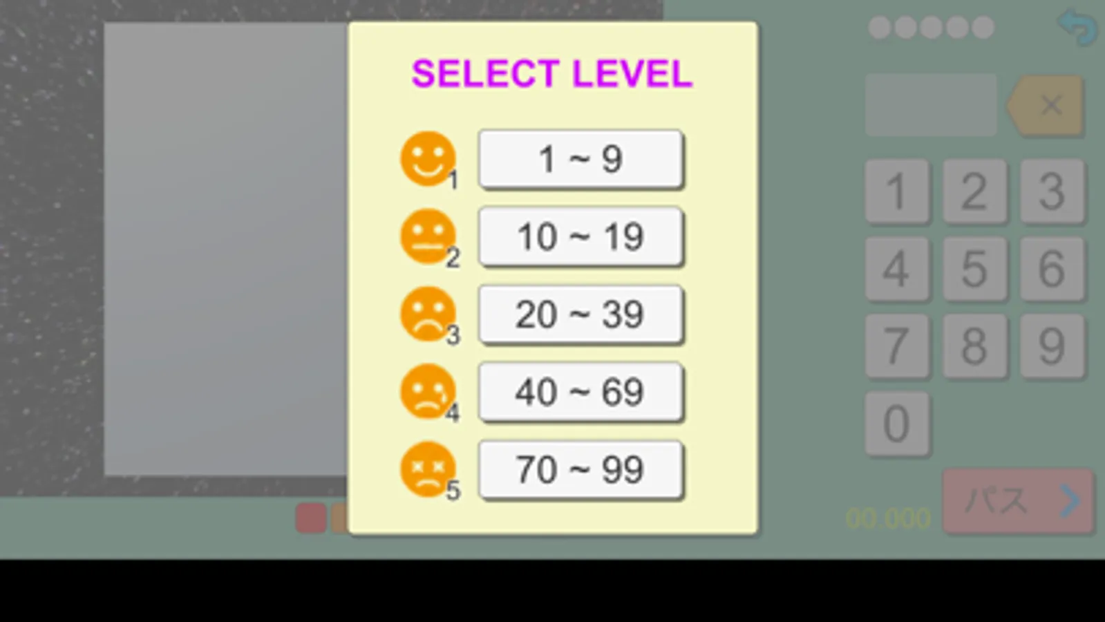 - You can choose from a small number to a maximum of 99, 5 difficulty levels.