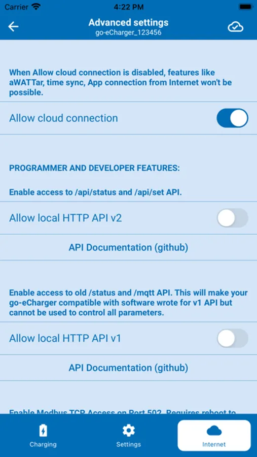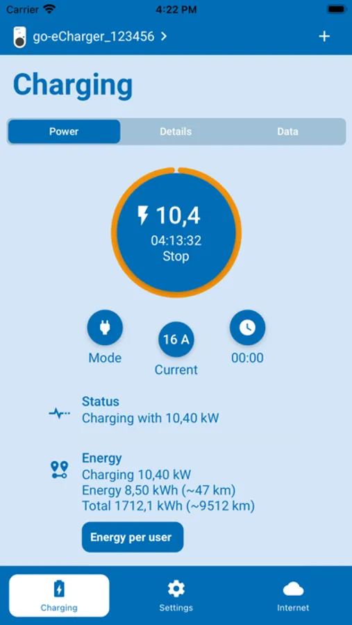 Use this app to manage your 22kW go-eCharger from https://go-e.co