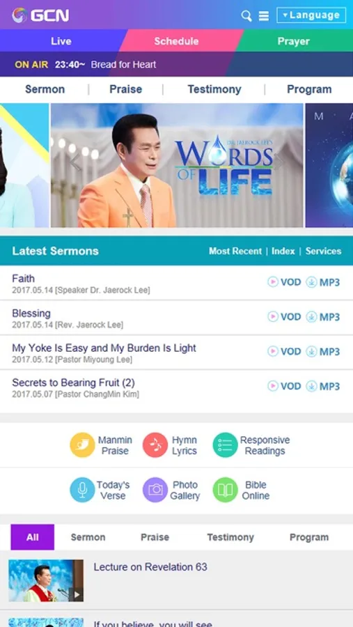 GCN produces soul-awakening programs with various contents including "The Word of Life," "Works of God's power" demonstrating the Bible is true and "God-pleasing praises and prayer."
