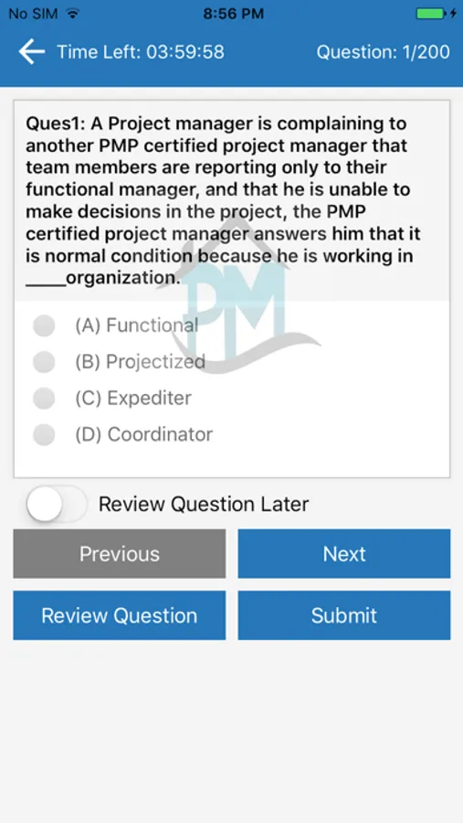 3. Select a real PMP exam containing 200 questions in 4 hours.