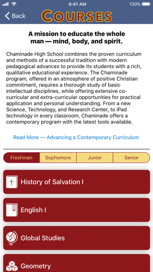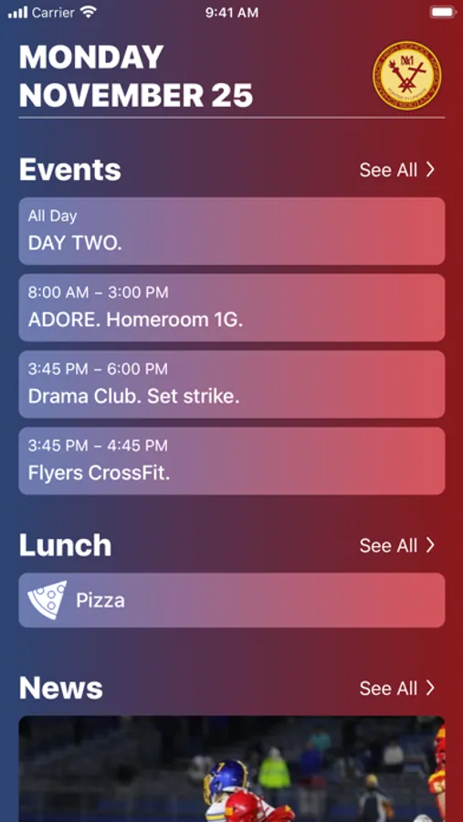 Instantly see what's on the lunch menu today, what events are coming up, and the latest news. Learn more about Chaminade in the Explore section featuring a virtual tour.