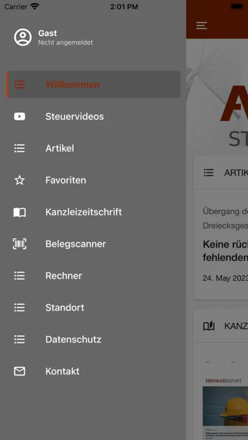 Als innovative Steuerkanzlei möchten wir mit dieser App für Smartphones und Tablets einen neuen Weg beschreiten und Ihnen als Flügelmann in Finanzdingen jederzeit mit aktuellen Informationen sowie Berechnungstools zur Seite stehen.