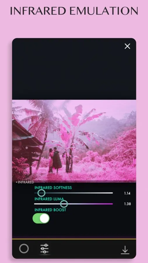 Using it’s advanced real-time algorithm, Full Spectrum Camera turns the green colors from grass, trees and bushes into eye-catching bright and popping colors, allowing to capture spectacular photos and videos, that truly stand out.