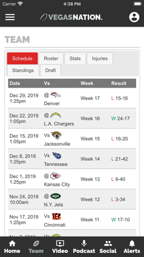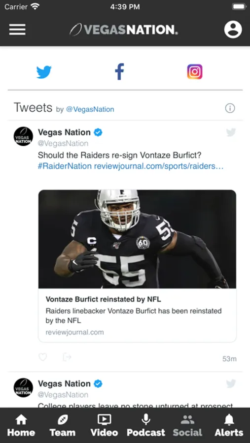 Social: Connected to the VEGAS NATION Twitter, Facebook and Instagram accounts for up-to-the minute news.