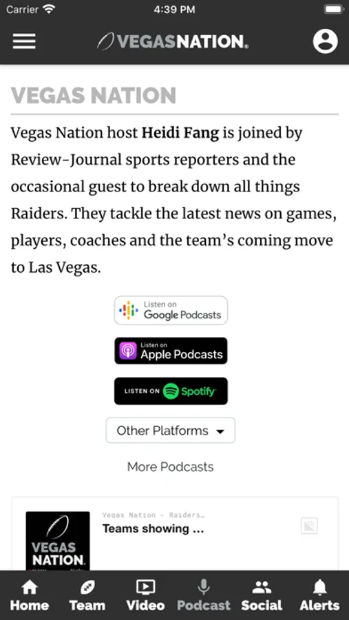 Access: The updated VEGAS NATION app mirrors the experience of using the vegasnation.com mobile site. All website content is available, including exclusive podcasts, videos and live-streamed coverage of press conferences and other news events.