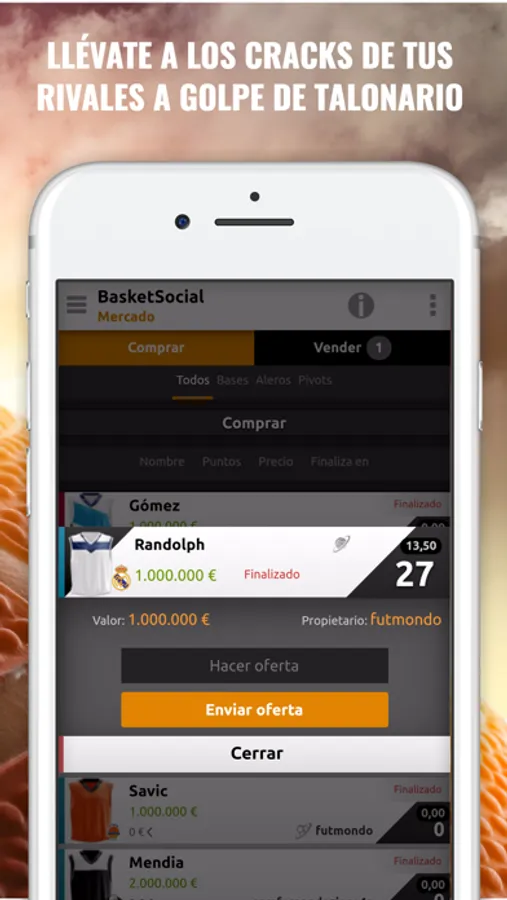 Ideal para ligas privadas de amigos. Comienza con un presupuesto inicial y ficha los mejores jugadores que salen al mercado hasta completar tu quinteto.