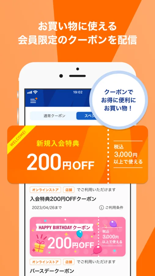 ・入会特典クーポンや、お誕生日月500円OFFクーポン、期間限定で人気商品が会員限定価格で買えるクーポンなど、アプリ会員様限定のお得なクーポン配信中。