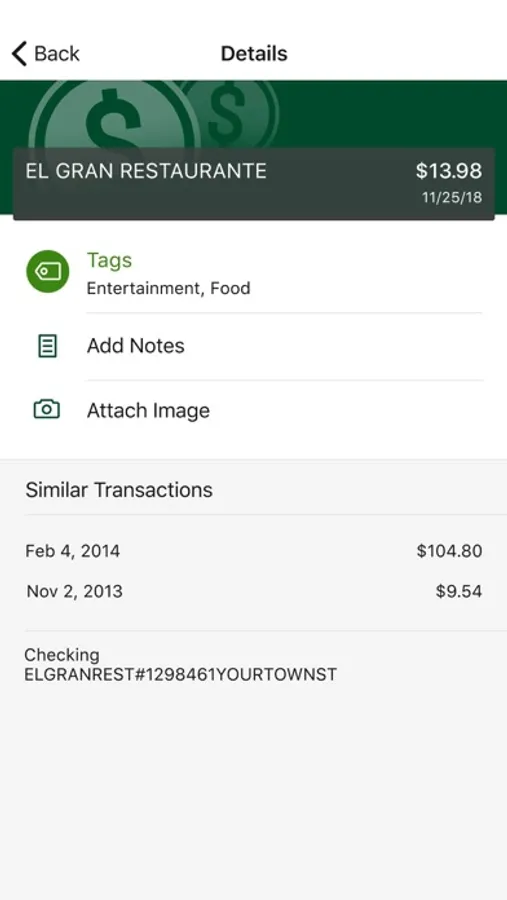 Add Tags, Notes, Images & Geo-Information: By enhancing transactions with custom tags, notes or photos of a receipt or check, you have the ability to stay organized and find exactly what you’re looking for when searching through your finances.