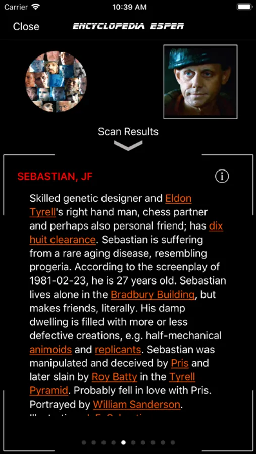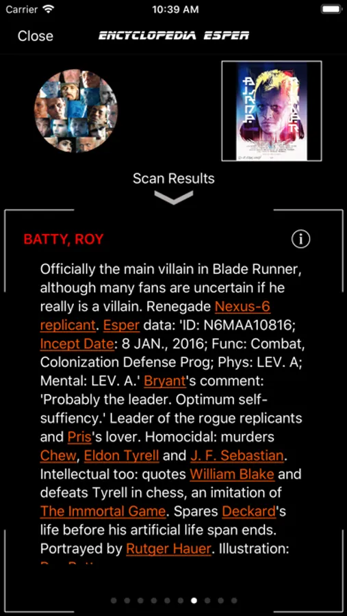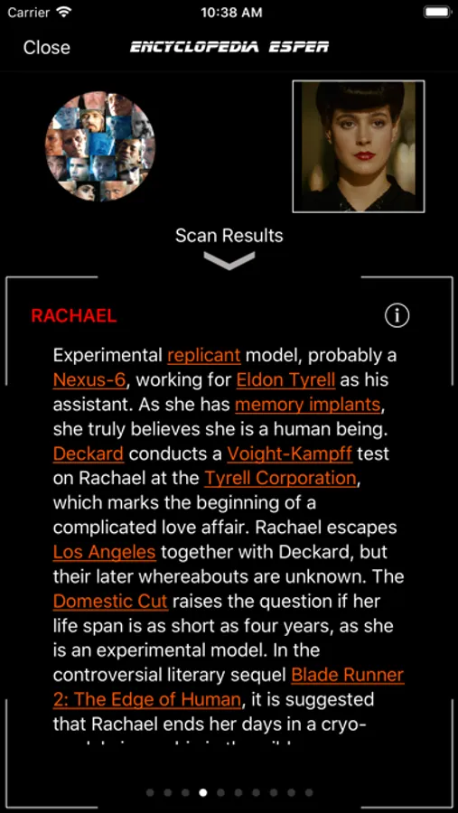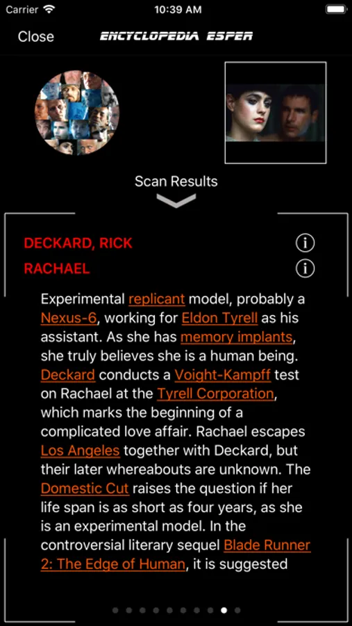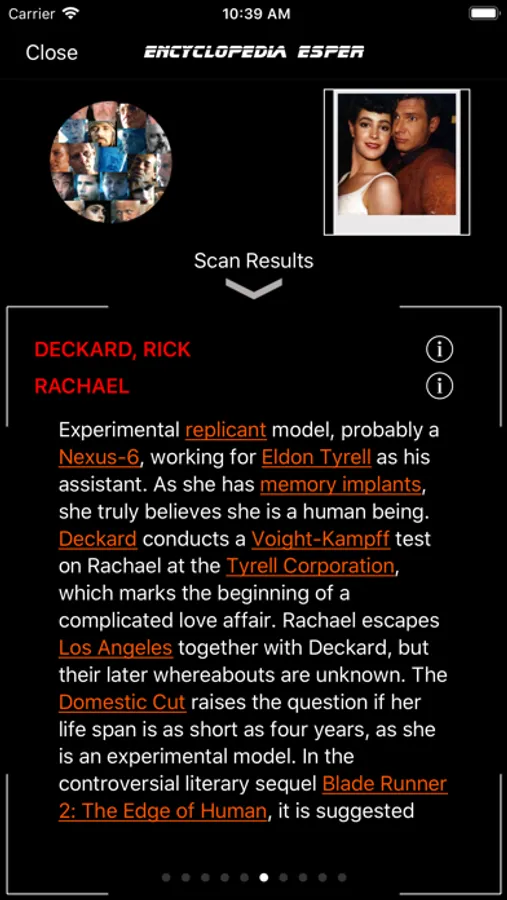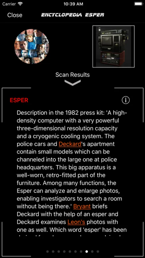 ○ Encyclopedia Esper - scan your precious photos - or take photos - to analyze them for Blade Runner 2019 characters and objects