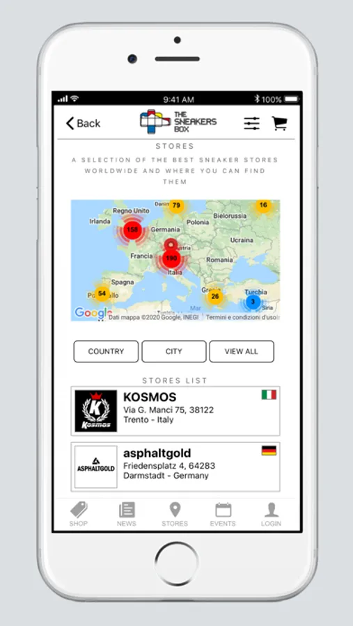 From now on, thanks to the release of TheSneakersBox App, you will have 5 continents with over 40 countries, 300 cities and 1.000 stores, all at your fingertips!