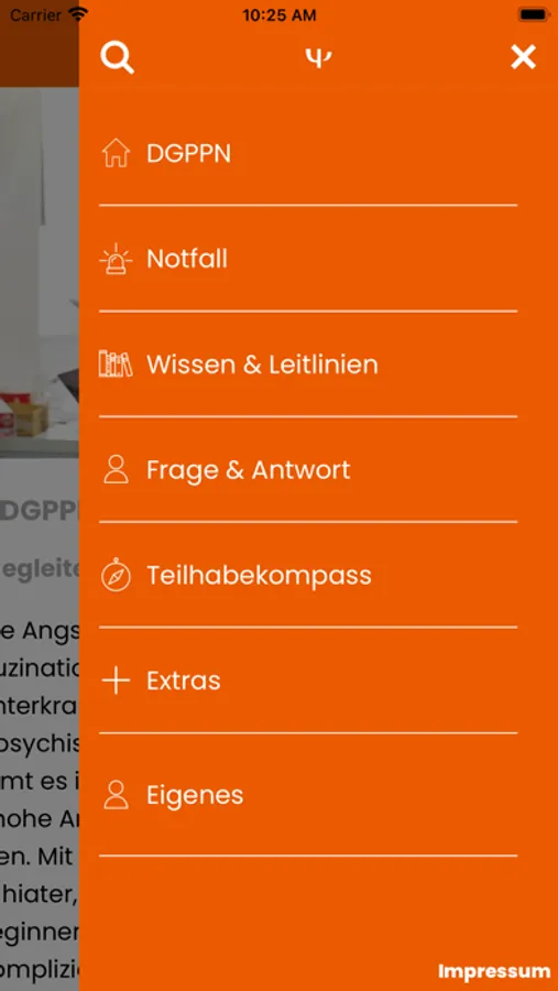 Hinter der App steht Deutschlands größte und älteste medizinische Fachgesellschaft für Fragen rund um psychische Erkrankungen: Die DGPPN vereint unter ihrem Dach über 9000 Ärzte und Wissenschaftler für Psychiatrie und Psychotherapie, Psychosomatik und Nervenheilkunde.