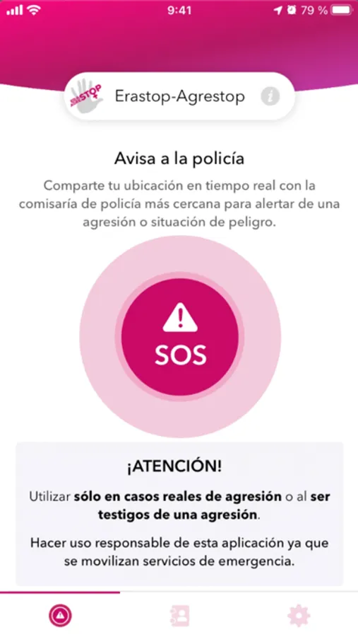 Botón de Estoy sufriendo una agresión que avisará inmediatamente a la Policía Municipal enviando tu posición.