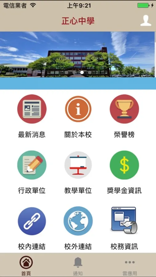 係專為學校學生、家長、教職員工所設計開發的APP,讓使用者透過行動裝置隨時掌握校園即時訊息,接收學校重要訊息通知,查詢成績、課表等校務相關資訊。