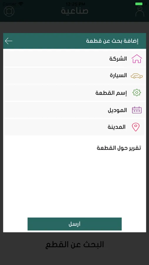صناعية يتيح لمستخدميه تقديم قطع السيارات التي يحتاجنها و اختيار احسن العروض المقدمة او عرض سياراتهم على الورش و اخيارت الورشة التي تناسبهم